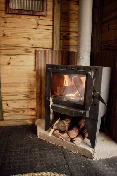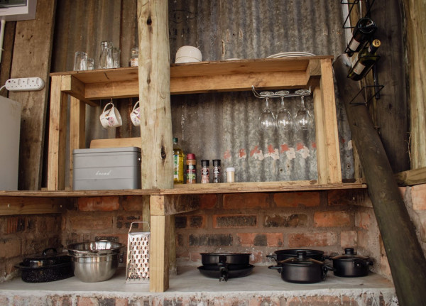Experience the simplicity of self-catering in our rustic cabin. The cozy bedroom, complete with a fireplace, offers a warm and inviting space. The kitchen is equipped with essential utensils, a bar fridge, and solar-powered appliances. We've provided bed linen, towels, firewood, and 10 liters of drinking water to enhance your stay. (Extra firewood is available at an additional cost.)